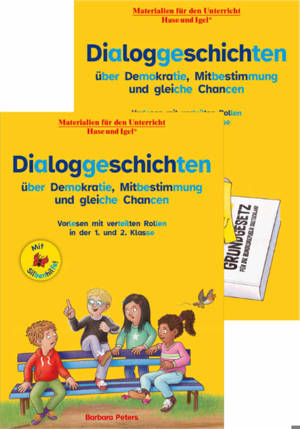 Beide Mappen mit Dialoggeschichten über Demokratie, Mitbestimmung und gleiche Chancen (mit Silbenhilfe) im Paket. Ideal für anschauliche und kindgerec...Lees meer