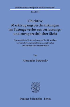 Den Mittelpunkt der Untersuchung bildet die Frage nach der rechtlichen Zulässigkeit der zahlenmäßigen Begrenzung von Taxen durch örtliche Behörden ( 1...Lees meer