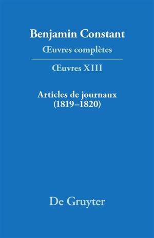 Ce volume XIII contient l'ensemble des articles publiés par Benjamin Constant durant les années 1819-1820, soit près de 120 contributions. Parus dans ...Lees meer