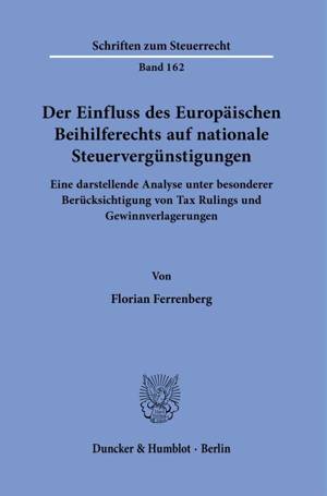 Gegenstand der Untersuchung ist das Zusammenspiel von europäischem Beihilferecht und nationalem Steuerrecht unter besonderer Berücksichtigung von Tax ...Lees meer