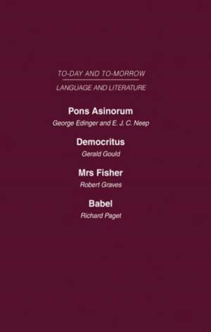 Today and Tomorrow Volume 22 Language & Literature reprints Pons Asinorum, Or the Future of Nonsense, Democritus, Or The Future of Laughter, Mrs Fishe...Lees meer