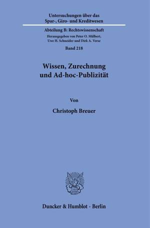 Im Mittelpunkt der Untersuchung steht die Frage, wann sich ein Emittent im Rahmen seiner Ad-hoc-Publizitätspflicht nach Art. 17 MAR und 97 WpHG zurech...Lees meer