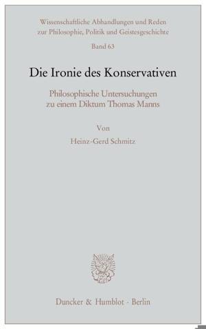 Thomas Mann nennt den Konservativen einen Ironiker; Richard Rorty die Ironikerin eine Liberale. Schmitz' Buch liefert zur Entscheidung der Frage, welc...Lees meer