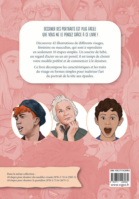 Dessiner des portraits est plus facile que vous ne le pensez grâce à ce livre ! Découvrez 42 illustrations de différents visages, féminins ou masculins, qui sont à reproduire en seulement 10 étapes simples. Un sourire de bébé, un regard d’acier ou un air pensif, il est temps de choisir votre modèle préféré et de commencer à le dessiner. Ce livre décompose les caractéristiques et les traits du visage en formes simples pour maîtriser l’art du portrait de la tête aux épaules.