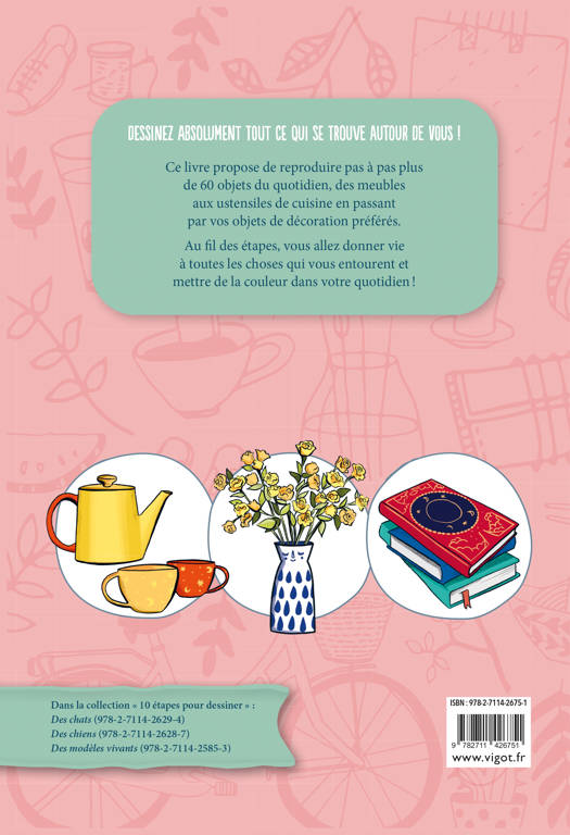Ce livre propose de reproduire pas à pas plus de 60 objets du quotidien, des meubles aux ustensiles de cuisine en passant par vos objets de décoration préférés. Au fil des étapes, vous allez donner vie à toutes les choses qui vous entourent et mettre de la couleur dans votre quotidien !