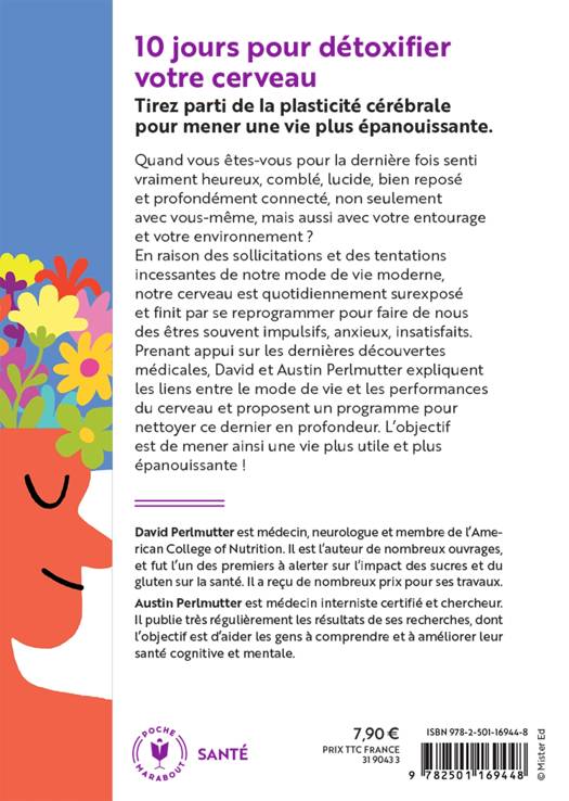 Prenant appui sur les dernières découvertes médicales, David et Austin Perlmutter expliquent les liens entre le mode de vie et les performances du cerveau et proposent un programme pour nettoyer ce dernier en profondeur. L'objectif est de mener ainsi une vie plus utile et plus épanouissante !