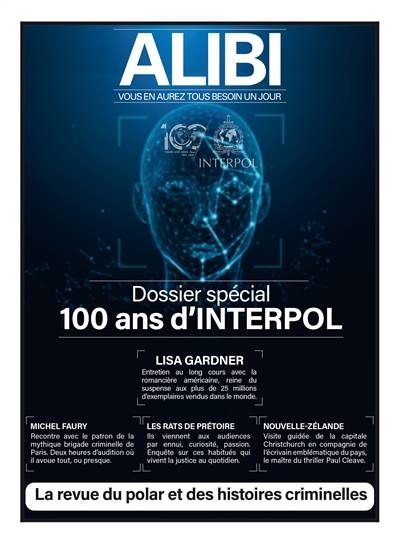 Dossier spécial Interpol : 100 ans - Dans les coulisses de l'institution secrète // Garde à vue : Lisa Gardner la star du suspense psychologique Michel Faury, le directeur de la crim´ // Profilage 1 : Asa Larsson, la reine du polar suédois qui vient du nord du cercle polaire // Profilage 2 : Philippe Charlier, médecin légiste et archéo-anthropologue, l'Indiana Jones des cimetières // Archives : Ian Flemming // Reconstitution : Le vol de la Pierre d'Écosse // Instruction : Rats du palais (ou de prétoires) // Expertise : La comédie policière // Filature : Nouvelle-Zélande ? Fred Rapilly // BD : bonnes feuilles de NewBurn // Témoin oculaire : Johanna Gustawson // Most wanted : Inde ? Claude Combet