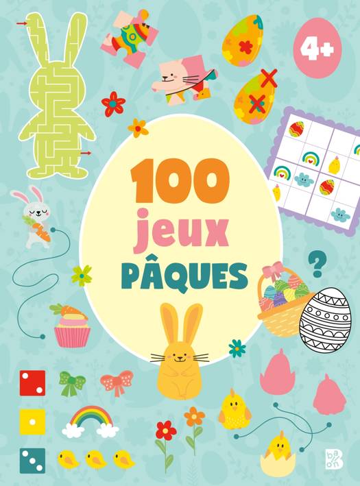 Le lapin de Pâques a prévu pour toi 100 chouettes jeux : des labyrinthes, trouver les différences, des dessins avec code couleur, et bien d'autres encore. Pour des heures d'amusement !