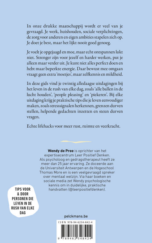 In onze drukke maatschappij wordt er veel van je gevraagd. Je hebt je werk, je huishouden, sociale verplichtingen, de zorg voor anderen en eigen ambities; alles stapelt zich op. Je probeert het zo goed mogelijk te doen maar het lijkt nooit goed genoeg. Je stresssysteem is continu actief en hoe moe je ook bent, echt ontspannen lukt niet. In deze gids selecteerden we twintig alledaagse uitdagingen bij het leven in de rush van elke dag. Je vindt bij elke uitdaging tips die je leven eenvoudiger kunnen maken: het zijn echte lifehacks.