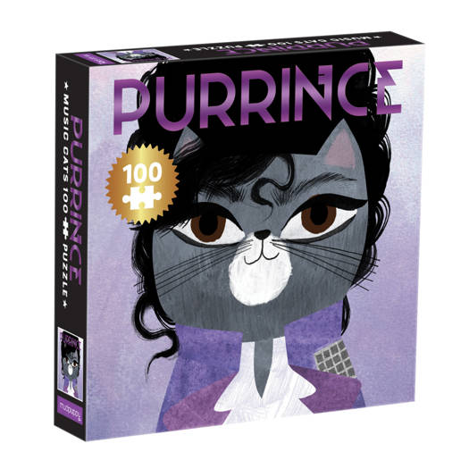 Introduce a music legend with this puzzle inspired by the iconic pop star. The Purrince Music Cats 100 Piece Puzzle includes cool shiny foil embellishments on the box and puzzle and is great fun for everyone. Mudpuppy puzzles are packaged in matte-finish sturdy boxes, perfect for gifting, reuse, and storage.