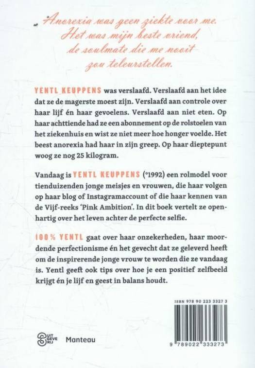 Yentl was verslaafd. Verslaafd aan controle over haar lijf én haar gevoelens. Verslaafd aan het idee dat ze de magerste moest zijn. Op haar achttiende had ze een abonnement op de rolstoelen van het ziekenhuis en wist ze niet meer hoe honger voelde. Het beest anorexia had haar in zijn greep. Op haar dieptepunt woog ze nog 25 kilogram.