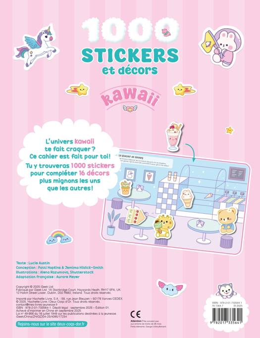 L'univers kawaii te fait craquer? Ce cahier est fait pour toi! Tu y trouveras 1000 stickers pour compléter 16 décors plus mignons les uns que les autres!
