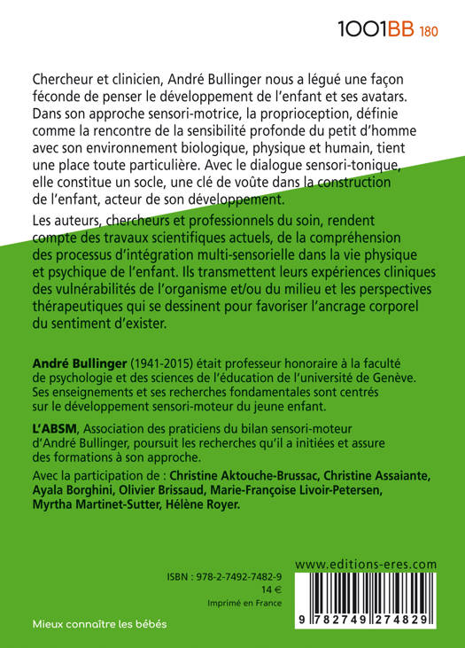 Chercheur et clinicien, André Bullinger nous a légué une façon féconde et constructive de penser le développement et ses avatars. Dans cette approche sensori-motrice, la proprioception tient une place toute particulière, constituant ainsi, avec le dialogue sensori-tonique, un socle, une clé de voûte dans la construction de l’enfant, acteur de son développement. Les auteurs rendent compte des données les plus actuelles des recherches scientifiques, de la compréhension des processus d’intégration multi-sensorielle, des cliniques des vulnérabilités, et des perspectives thérapeutiques.