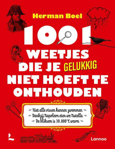 kreeften jaarringen hebben? het logo van Queen bestaat uit de sterrenbeelden van de bandleden? rum ooit een belangrijk betaalmiddel was in het Australische Sydney? het nog maar twee keer sneeuwde in de Sahara? bibliofoben bang zijn voor boeken?Na het succes van 999 feiten waar je helemaal niets aan hebt verzamelde weetjeskoning Herman Boel opnieuw meer dan duizend wist-je-datjes die keer op keer weten te verrassen. Want wist je dat slangen aardbevingen kunnen voorspellen? Of waarom tennisballen geel zijn? En wanneer de eerste foto van de maan genomen werd?