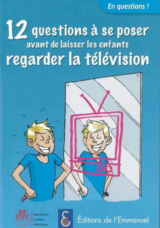 Ce manuel éducatif ouvre aux parents et éducateurs des pistes de réflexion et de dialogue autour de l'usage de la télévision. Des questions incontournables pour toutes les familles. Quelques chiffres : en moyenne, l'enfant jusqu'à 14 ans passe plus de 2h par jour devant la télévision. Le jeune à partir de 15 ans la regarde plus de 3h par jour. Un constat qui mérite de prendre quelques minutes pour réfléchir au sujet. En effet, les images constituent un outil majeur de transmission, de dialogue entre les parents et les éducateurs, d'un côté, et les enfants et les adolescents, de l'autre côté. La télévision est omniprésente dans la vie des enfants et des adolescents, elle n'a pas - encore - été supplantée par les autres écrans qui la concurrencent par l'ampleur de l'utilisation dont ils font déjà l'objet par le jeune public (console de jeux, téléphones, ordinateurs connectés à internet...) Le problème n'est pas d'abord dans une éventuelle addiction à la télé mais dans le fait que les images diffusées prennent une place considérable dans le processus éducatif de l'enfant, dans sa croissance. Compte tenu de ce que enfants et ados regardent, cette contribution peut favoriser la transmission de représentation erronée de la relation à l'autre, du rapport à soi, de la vie en société... Cette brochure est là pour aider chacun à répondre à ces questions que les enfants poseront, afin de transmettre sans idéalisme un projet de vie ambitieux, vrai et enthousiasmant