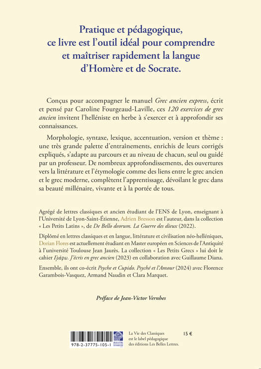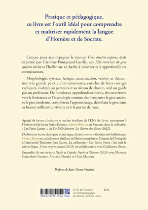 Conçus pour accompagner le manuel Grec ancien express, écrit et pensé par Caroline Fourgeaud-Laville, ces 120 exercices de grec ancien invitent l’helléniste en herbe à s’exercer et à approfondir ses connaissances.
