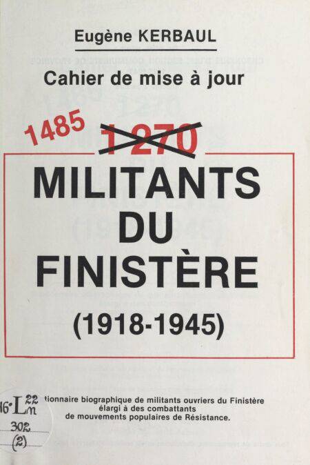Cahier de mise à jour : dictionnaire biographique de militants ouvriers du Finistère, élargi à des combattants de mouvements populaires de Résistance
