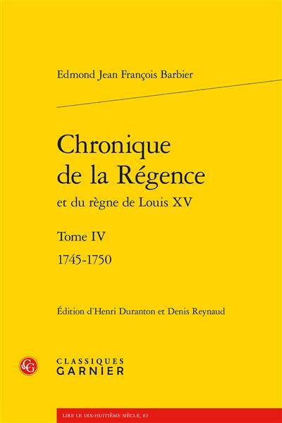 Avec sa Chronique de la Régence et du règne de Louis XV (1718-1763), l'avocat Barbier fait partie, aux côtés de Mathieu Marais (Journal de Paris, 1713-1727) et de Siméon Prosper Hardy (Journal d'événements tels qu'ils parviennent à ma connaissance, 1733-1789), de la courte liste des grands mémorialistes du XVIIIe siècle. Par sa longueur, la minutie et la richesse de son contenu, il est un point de passage obligé de toute étude sur le siècle. Constamment cité dans la seule édition sérieuse à ce jour (1857), il méritait une réédition tenant compte des acquis érudits accumulés depuis un siècle et demi.