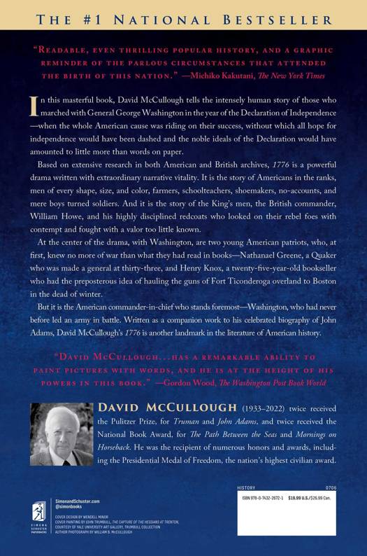 In this masterful book, David McCullough tells the intensely human story of those who marched with General George Washington in the year of the Declaration of Independence--when the whole American cause was riding on their success, without which all hope for independence would have been dashed and the noble ideals of the Declaration would have amounted to little more than words on paper.
