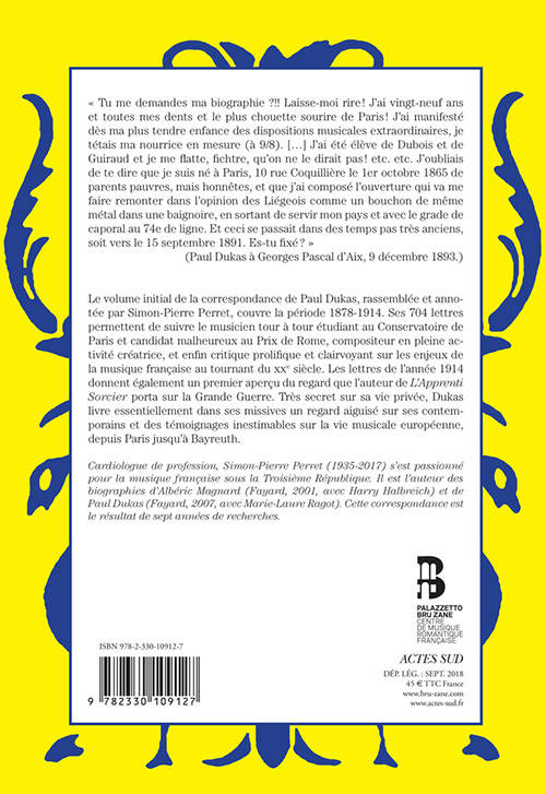 Paul Dukas, né en 1865 et mort en 1935, connaît une renommée internationale, amplifiée notamment depuis la mise en image de son poème symphonique L'«Apprenti Sorcier» dans le «Fantasia» de Walt Disney. Ce contemporain de Claude Debussy et ami de Gabriel Fauré reste pourtant une figure assez peu connue. Ses sept cent quatre lettres permettent de suivre le musicien, tour à tour étudiant au Conservatoire de Paris et candidat malheureux au Prix de Rome, compositeur au plus fort de sa production et, enfin, critique prolifique et clairvoyant sur les enjeux de la musique française au tournant du XXe siècle.