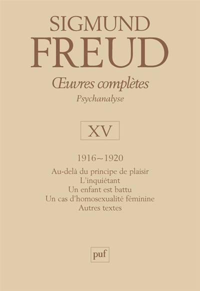 Les textes concernant la psychanalyse écrits par Sigmund Freud entre 1916 et 1920, en particulier le célèbre texte Au-delà du principe de plaisir, dans une nouvelle traduction des Œuvres complètes - Psychanalyse de Freud.