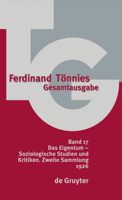 In TG 17 werden zwei Bücher Tönnies' aus dem Jahr 1926 wieder zugänglich. Die schmale Monographie "Das Eigentum" behandelt ein tagesaktuelles Thema. 1926 gipfelte die seit 1918 intensive politische Diskussion zum Umgang mit dem konfiszierten Eigentum der in der Revolution entmachteten Fürsten in Volksbegehren und Volksentscheid. Tönnies vertieft in eine grundsätzliche rechtssoziologische Ausarbeitung zum Eigentum, besonders dem Bodeneigentum. Die Sammlung "Soziologische Studien und Kritiken II" macht einen großen Teil der kleineren Schriften zugänglich, in denen Tönnies seinen Zugang zur Soziologie zwischen den großen Monographien "Gemeinschaft und Gesellschaft (1887, TG 2) und der "Einführung in die Soziologie" (1931, TG 21) entwickelt. Das reicht von begrifflich-konzeptionellen Überlegungen über die Auseinandersetzung mit der Geschichte des soziologischen Denkens in Philosophie und Staatswissenschaft bis zu Analysen, in denen Tönnies die Fruchtbarkeit der Begriffe seiner Soziologie an sozialen Zusammenhängen erprobt. Wichtig hier vor allem seine Soziologie des Versicherungswesens, an der er zeigt, wie sich eine gemeinschaftliche Institution der gegenseitigen Hilfe in ein Geschäft wandelt und wie dieses durch staatliche Regulierung modifiziert wird; in Tönnies' Perspektive ein Beispiel für die Entwicklung des Kapitalismus zum "Sozialismus", zu einer sozialen Marktwirtschaft. Von höchstem Interesse auch die Auseinandersetzung mit der Geschichtsphilosophie Ernst Troeltschs.