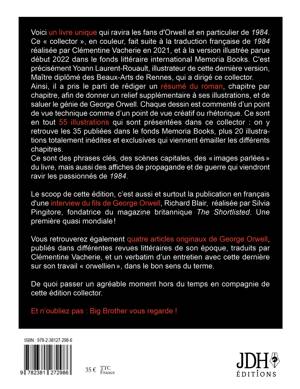 LE COLLECTOR 1984 : un produit d'exception pour les fans du roman ! Retrouvez en exclusivité mondiale, une interview du fils de George Orwell traduite en français ! Mais aussi une interview de la dernière traductrice en date de 1984... et aussi 55 illustrations commentées artistiquement et techniquement par leur créateur Yoann Laurent-Rouault, concepteur de cet ouvrage. Vous retrouverez bien sûr aussi un résumé de 1984 chapitre par chapitre, que les illustrations viennent émailler. Sans oublier quatre essais peu connus de George Orwell dont les confessions d'un critique littéraire !