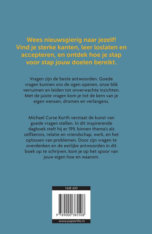 Vragen zijn de beste antwoorden! Daarom heeft Michael Curse Kurth een verzameling vragen samengesteld over onderwerpen als vriendschap, werk, geld, relaties en dromen. Zij kunnen helpen om tot de kern te komen van je wensen, dromen en hoop.