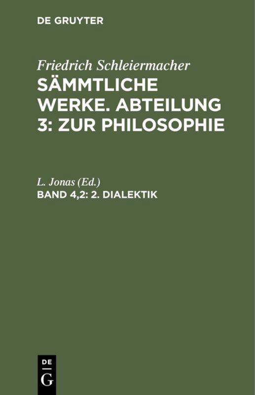 Simultaneously publ. as: Friedrich Schleiermacher's literarischer Nachlaß Zur Philosophie, Band 2,2
