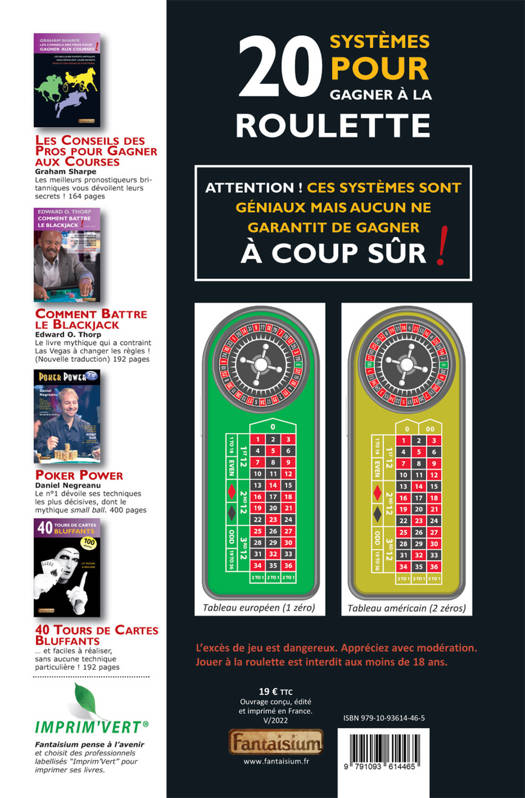 Beaucoup de gens ont essayé de trouver un moyen de gagner à la roulette, sans vraiment y parvenir. Mais avaient-ils poussé la logique du hasard dans ses derniers retranchements ? François Montmirel, lui, l’a fait ! Il rappelle les lois du hasard qui régissent la roulette, ses forces et ses faiblesses, et révèle des approches nouvelles ou méconnues découvertes au cours de ses décennies de recherche, tout en assurant une gestion financière optimale. Il dévoile les secrets de ce jeu emblématique et détaille les 20 meilleurs systèmes susceptibles de le battre sur le court et le moyen terme. La question se pose maintenant : êtes-vous prêt à faire sauter la banque ?