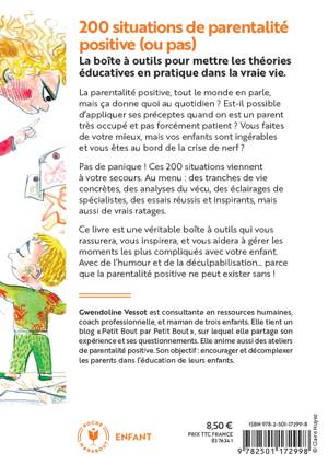 La parentalité positive, tout le monde en parle, mais ça donne quoi au quotidien? Est-il possible d’appliquer ses préceptes quand on est un parent très occupé et pas forcément patient ? Vous faites de votre mieux, mais vos enfants sont ingérables et vous êtes au bord de la crise de nerf ? Pas de panique! Ces 200 situations viennent à votre secours. Au menu: des tranches de vie concrètes, des analyses du vécu, des éclairages de spécialistes, des essais réussis et inspirants, mais aussi de vrais ratages. Ce livre est une véritable boîte à outils qui vous rassurera, vous inspirera, et vous aidera à gérer les moments les plus compliqués avec votre enfant. Avec de l’humour et de la déculpabilisation… parce que la parentalité positive ne peut exister sans !