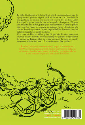 Le Glou Guide, pisteur infatigable de picole sauvage, découvreur de jajas joyeux et généreux depuis 2018, est de retour ! Le Glou Guide, le seul guide qui dit ce qu'il boit et qui boit ce qu'il dit ! Le Glou Guide, le seul guide qui ne recrache pas, mais regarde à la dépense ! Slogans capillotractés mis à part, parce qu'ils ont sacrément le vent en poupe, parce que les vignes se prennent de grandes baffes climatiques à la chaîne, il est chaque année de plus en plus difficile de trouver des vins naturels magnifiques à coût modique. C'est donc un bien bel effort qu'ont dû produire les deux auteurs et l'autrice de cette nouvelle fournée avinée pour parvenir à sélectionner les canons de l'année. Mais ils y sont arrivés, à la sueur du coude, maintes et maintes fois levé... À vous désormais d'en profiter !