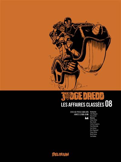 LES GRANDES SAGAS INEDITES DE JUDGE DREDD ! Avec ce huitième volume des Affaires Classées poursuivez votre découverte des histoires cultes de l'âge d'or de la série britannique JUDGE DREDD, restées inédites en France jusqu’à ce jour ! Parmi elles, nous pouvons ainsi citer "PORTRAIT D'UN POLITICIEN ", moquerie hilarante des "experts" des plateaux télé et des politiciens, autour de la starification d'un orang-outan, ou encore "REQUIEM POUR UN POIDS LOURD", parodie des compétitions sportives et du culte de la performance poussé à son extrême. Les histoires sont toutes scénarisées par le duo le plus emblématique de la série à l'écriture : John WAGNER, co-créateur du personnage et Alan GRANT, et sont dessinées par certains des plus grands dessinateurs issus du magazine 2000 AD : Carlos EZQUERRA, le co-créateur du personnage ou encore les regrettés Steve DILLON (Preacher, Hellblazer), Ron SMITH, Ian GIBSON (Halo JOnes) ou encore Jim BAIKIE.