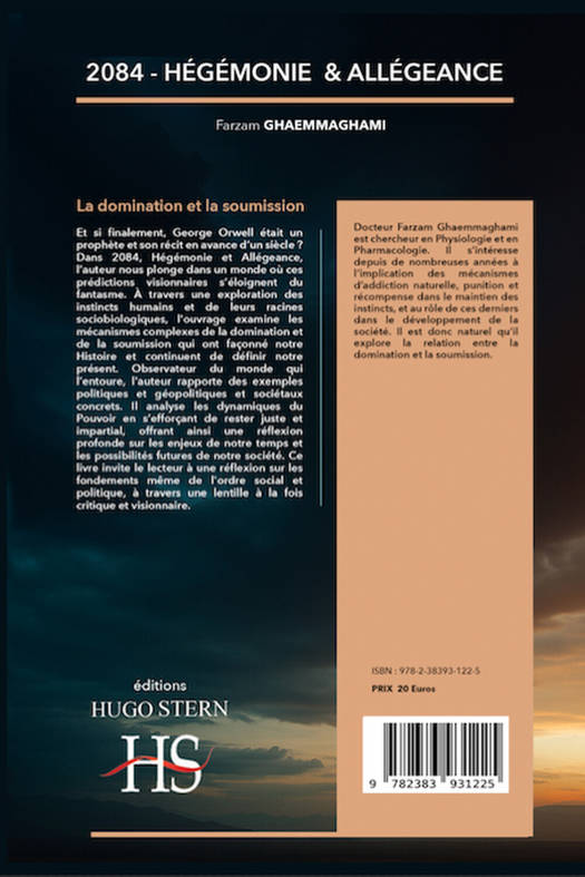 Et si finalement George Orwell était un prophète et son récit en avance d’un siècle ? Dans 2084, Hégémonie et Allégeance, l’auteur nous plonge dans un monde où ces prédictions visionnaires s’éloignent du fantasme. À travers une exploration des instincts humains et de leurs racines sociobiologiques, l'ouvrage examine les mécanismes complexes de la domination et de la soumission qui ont façonné notre Histoire et continuent de définir notre présent. Observateur du monde qui l’entoure, l'auteur rapporte des exemples politiques et géopolitiques et sociétaux concrets. Il analyse les dynamiques du Pouvoir en s’efforçant de rester juste et impartial, offrant ainsi une réflexion profonde sur les enjeux de notre temps et les possibilités futures de notre société. Ce livre invite le lecteur à une réflexion sur les fondements même de l'ordre social et politique, à travers une lentille à la fois critique et visionnaire.