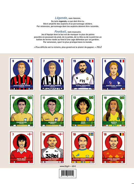 La pression monte pour les fans de foot ! Qui remportera la 22e Coupe du Monde de la FIFA devant 3 milliards de spectateurs ? À l'occasion de la Coupe du Monde 2022 qui se déroulera du 22 novembre au 18 décembre 2022 au Qatar, les éditions 21g proposent un regard admiratif et documenté, mais non dénué d'humour, sur 50 légendes du football européen et mondial qui ont marqué les 60 dernières années. De Pelé à Mbappé, les carrières de 25 des plus grands joueurs sont représentées sous la forme d'une série de «Life-o-rama®», représentations graphiques synthétiques. 25 autres joueurs sont présentés sous forme de fiches détaillées avec tous leurs exploits !