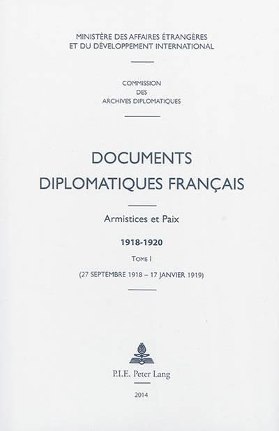 Le présent volume est le premier des quatre volumes de la nouvelle série des Documents diplomatiques français intitulée: Armistices et Paix (1918-1920). Il présente les documents de la première période envisagée: de la fin septembre 1918 au 17 janvier 1919, veille de l'ouverture de la Conférence de la Paix à Paris. Il y a d'abord le temps des armistices, le premier étant signé à Salonique avec les Bulgares le 29 septembre, le dernier à Rethondes avec l'Allemagne, le 11 novembre, à la suite de la demande présentée par les Allemands au président Wilson, dès le 4 octobre. Les Français y voient une « manoeuvre » de « l'ennemi » pour obtenir une paix douce de la part des États-Unis. La tension franco-américaine est donc immédiate. La France, victorieuse mais exsangue, espère obtenir des garanties de sécurité face à une Allemagne qu'elle juge éternellement dangereuse. Dans ce contexte de désagrégation des empires (Autriche-Hongrie, Empire ottoman, Russie), la paix est difficile à préparer. La France est favorable à l'application du principe des nationalités (restauration de la Pologne et création de la Tchécoslovaquie). Mais, elle doit tenir compte dans le cas yougoslave des revendications contradictoires de ses alliés italiens et serbes. Au Moyen-Orient, elle redoute que la Grande-Bretagne, maîtresse du terrain, fasse tout pour l'évincer et ne pas appliquer les accords Sykes-Picot de 1916 prévoyant un véritable partage des territoires arabes entre les deux pays. À l'Est de l'Europe, les diplomates français craignent la contagion bolchevique et beaucoup souhaitent que leur gouvernement contribue à l'endiguer par les armes. Partout, l'écho de la victoire des Alliés et Associés est immense. Tous les États, belligérants ou non, entendent être représentés à la Conférence de la Paix. La France obtient que celle-ci ait lieu sur son territoire et fait tout pour réussir ce moment au cours duquel Paris sera la capitale du monde.