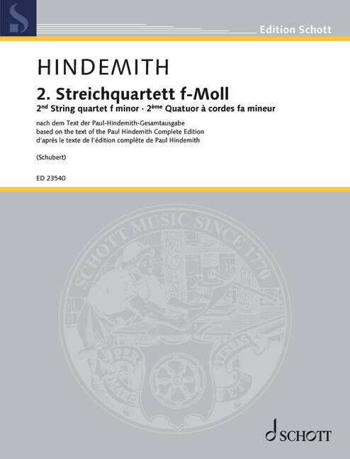 „Inhaltliche Tiefe, überschäumende Lebendigkeit und Raffinesse der Kompositionstechnik“ – lobt Samuel Rhodes, der Bratschist des renommierten Juilliard String Quartet, Paul Hindemiths Streichquartette. Der Komponist entwarf das Quartett op. 10 1918 an der Front im Elsass, und doch zeigt es nicht den kleinsten Einfluss der schrecklichen Kriegsereignisse. Das dreisätzige Werk ist voll jugendlichen Überschwangs und spiegelt Hindemiths neue Kompositionstechniken wider. Seine Meisterschaft und Fantasie im Gebrauch der Instrumente beweisen, dass er mit der Gattung Streichquartett schon völlig vertraut war. Erstmals erscheinen sämtliche Streichquartette von Paul Hindemith nach dem Text der Paul Hindemith-Gesamtausgabe. Schwierigkeitsgrad: 5