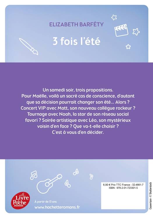 Un samedi soir, trois propositions. Pour Maëlle, voilà un sacré cas de conscience, d'autant que sa décision pourrait changer son été. Alors ? Concert VIP avec Matt, son nouveau collègue rockeur ? Tournage avec Noah, la star de son réseau social favori ? Soirée artistique avec Léo, son mystérieux voisin d'en face ? Que va-t-elle choisir ? C'est à vous d'en décider.