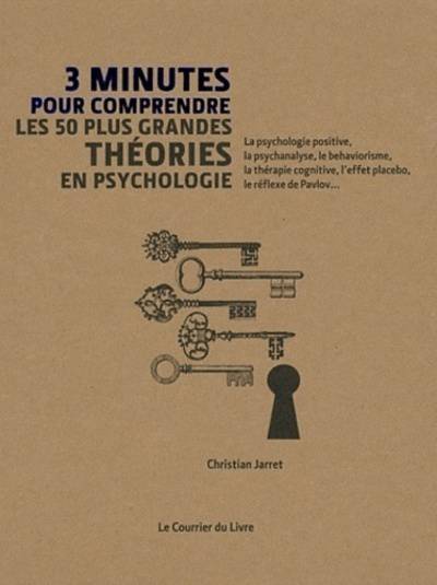 La psychologie positive, la psychanalyse, le behaviorisme, la thérapie cognitive, l'effet placebo, le réflexe de Pavlov... Bien sûr, vous en avez déjà entendu parler, mais savez-vous vraiment de quoi il s'agit ? Voici enfin un livre de "vulgarisation intelligente", qui vous aidera à comprendre les 5o principales théories en Psychologie. Il met les plus grands psychologues au défi d'expliquer de façon claire et accessible chaque théorie en : 30 secondes, 2 pages, 300 mots et i image, soit 3 minutes en tout pour comprendre ! Grâce à ce livre, non seulement vous connaîtrez mieux les principales théories en Psychologie, mais vous découvrirez peut-être certains aspects ignorés de votre personnalité ou de ceux qui vous entourent...