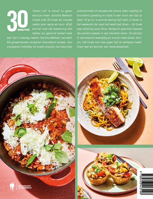 ‘Geen tijd’ is vanaf nu geen excuus meer. Sandra Bekkari maakt met dit boek en nieuwe reeks voor eens en voor altijd komaf met de bewering dat lekker en gezond koken heel wat tijd in beslag neemt. Sandra Bekkari serveert 80 gloednieuwe recepten boordevol smaak. Van voedzame ontbijtjes tot snelle snacks, van kleurrijke ovenschotels tot smaakvolle diners. Elke maaltijd zit boordevol goesting en staat in een mum van tijd op tafel. Of je nu ’s avonds weinig tijd hebt of liever in het weekend de oven het werk laat doen – dit boek past altijd bij jouw ritme. Verwacht gezonde toppers die perfect passen in een hectisch leven. '30 minuten' is verrassend veelzijdig en vooral razendsnel. Kortom, hét boek voor wie geen tijd te verliezen heeft, maar wel wil winnen aan levenskwaliteit.