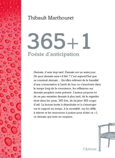 Demain, il sera trop tard. Demain est un autre jour. De quoi demain sera-t-il fait ? C'est aujourd'hui que se construit demain... Quelles relèvent de la banalité d'une conversation à l'arrêt de bus ou s'inscrivent dans le temps long de la conscience, les réflexions sur demain peuplent notre présent. L'auteur propose ici de ne pas remettre demain à plus tard, de le regarder droit dans les yeux, 365 fois, de lui jeter 365 coups d'oeil. La lecture invite à déambuler et à s'interroger sur le rapport au temps, à la mortalité, sur les défis à relever et les ressources à puiser pour écrire ce +1, ce demain qui reste en suspens.