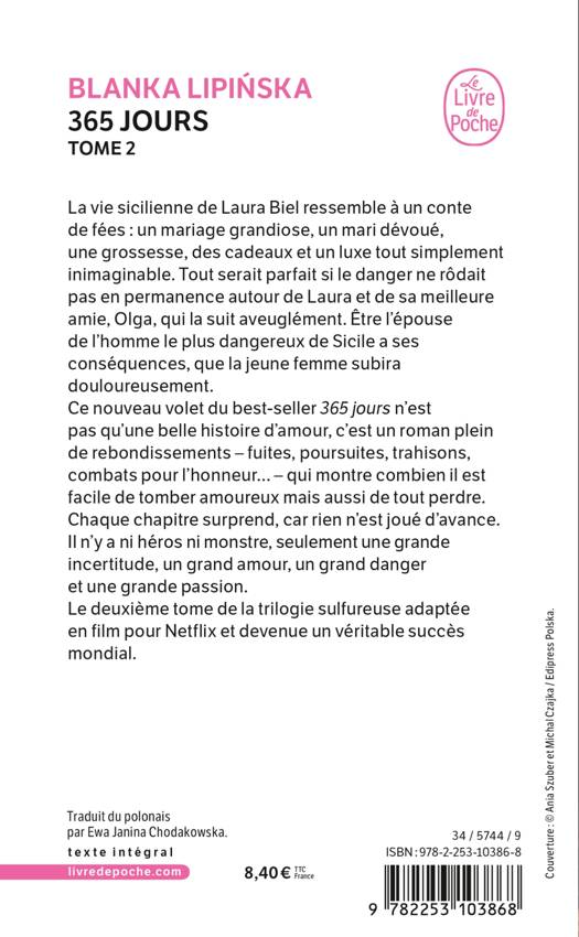 Le deuxième volet du best-seller 365 jours n'est pas seulement une belle histoire d'amour, c'est un roman plein de rebondissements surprenants – fuites, poursuites, trahisons, combats pour l'honneur… – qui montre combien il est facile de tomber amoureux mais aussi facile de tout perdre. Chaque chapitre surprend, car rien n'est joué d'avance. Il n'y a ni bons ni mauvais héros, mais une grande incertitude, un grand amour, un grand danger et une grande passion.