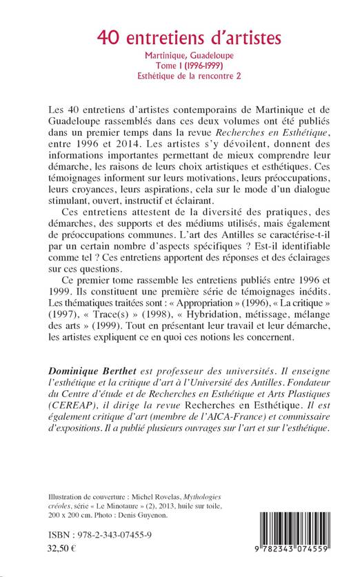 L'art des Antilles se caractérise-t-il par un certain nombre d'aspects spécifiques ? Est-il identifiable comme tel ? Voici ici des entretiens d'artistes réalisés entre 1996 et 1999. Ils constituent une première série de témoignages inédits. Les thématiques traitées sont : « Appropriation » (1996), « La critique » (1997), « Trace(s) » (1998), « Hybridation, métissage, mélange des arts » (1999). Tout en présentant leur travail et leur démarche, les artistes expliquent ce en quoi ces notions les concernent.
