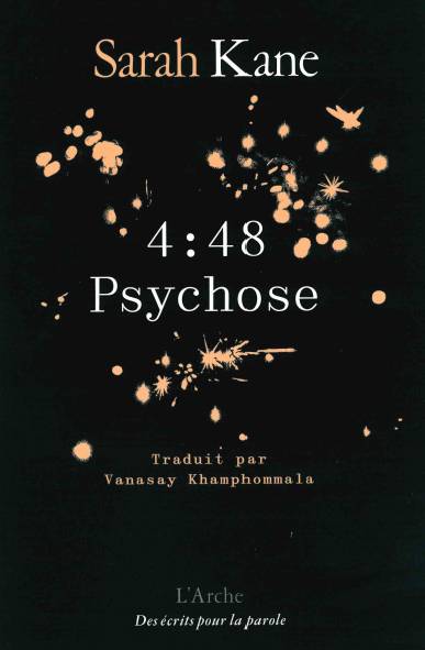 En 2001, L'Arche publiait 4.48 Psychose, texte posthume de Sarah Kane. 23 ans, 9 tirages et 24 500 exemplaires vendus plus tard, une nouvelle traduction de cette pierre angulaire du catalogue semblait nécessaire : Vanasay Kamphommala signe ici une traduction historique en totale pertinence avec le texte de Kane qui décloisonne les imaginaires de genre et les érotismes, en utilisant une police inclusive : BBB Baskervvol du collectif Bye Bye Binary.