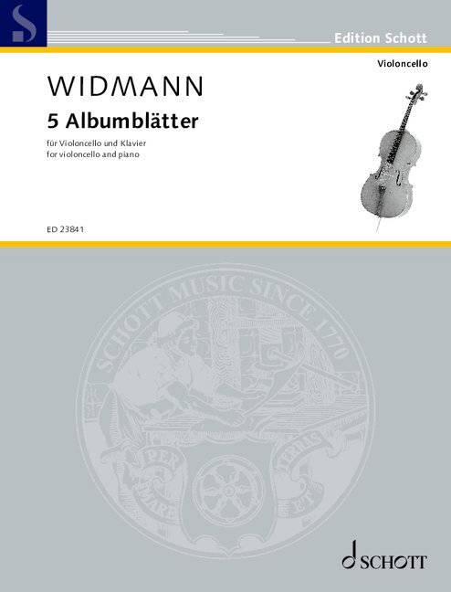 Jörg Widmann’s 5 Albumblätter are, as can easily be recognised from the titles of the individual pieces, homage pieces to Robert Schumann. In addition to the lyrical, dreamy quality, it is precisely the rapturous, glowing, youthful forward momentum that fascinates me about Schumann’s music, especially that for the cello. Instrumentation: cello and piano