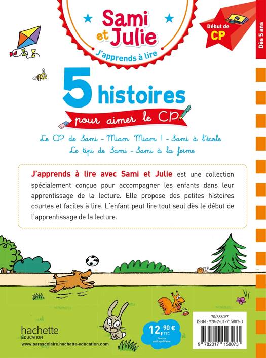Retrouvez, dans ce recueil, 5 histoires pour accompagner l’entrée en classe de CP avec Sami et Julie :