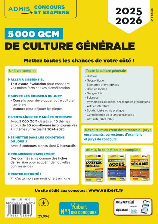 Un accompagnement pas à pas jusqu'au jour J pour réussir les épreuves de culture générale aux concours et examens en 2026 et 2027 + une application interactive avec Digischool pour s'entraîner autrement !