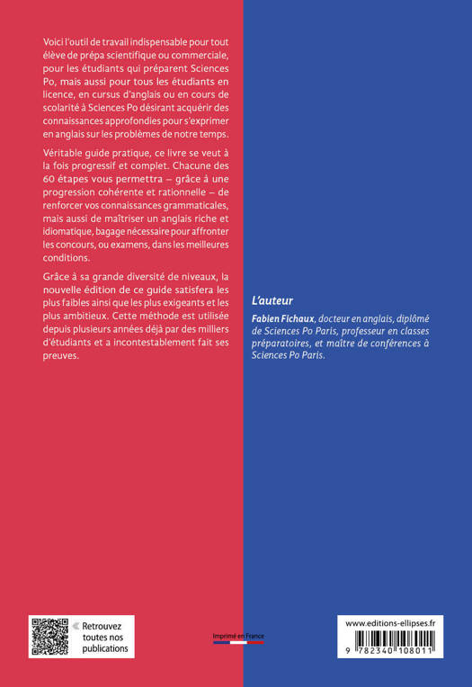 Véritable guide pratique, ce livre se veut à la fois progressif et complet, avec une grande diversité de niveau. Chacune des 60 étapes vous permettra – grâce à une progression cohérente et rationnelle – de renforcer vos connaissances grammaticales, mais aussi de maîtriser un anglais riche et idiomatique, bagage nécessaire pour affronter les concours, ou examens, dans les meilleures conditions.