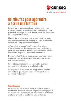 Alors, prenez 60 minutes pour apprendre à écrire une histoire qui vous donnera toutes les chances de retenir l’attention !