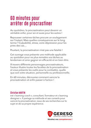 À travers différents personnages procrastinateurs, l'auteur illustre toutes les facettes de la procrastination et vous présente les outils pour la combattre, quelle que soit votre situation personnelle ou professionnelle.